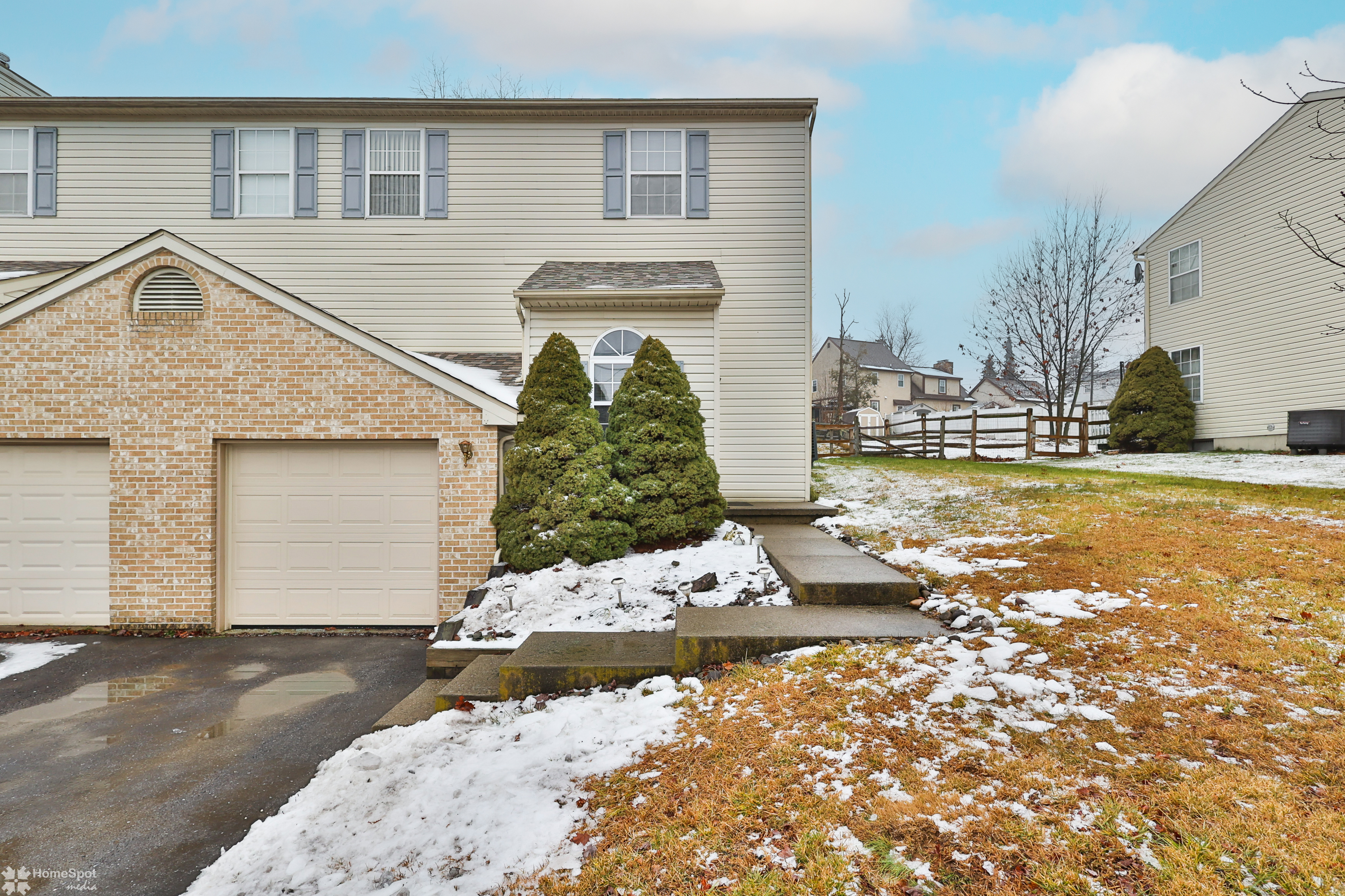 Welcome to this well-maintained 3-bedroom, 2.5 bath twin home located in the desirable East Penn School District. This Colonial-style home offers ample living space. The main level features a bright living room, formal dining room, eat-in kitchen, convenient first-floor laundry, and a beautiful four-season sunroom overlooking the fenced yard. Upstairs, you’ll find new carpeting throughout, a spacious primary bedroom with en-suite full bathroom, and two additional bedrooms with a full hall bath. Lower Level includes fully finished family room—perfect for entertaining or additional living space. Enjoy outdoor living with a deck perfect for relaxing/entertaining, fenced yard, and utility shed. Additional highlights include central air, a built-in one-car garage, public utilities, and a clear sewer lateral inspection. Conveniently located near shopping, dining, parks, and major routes—this home is move-in ready and a must-see!